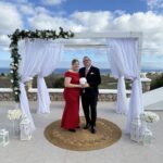 Screen saver is a photo of lady in red dress and man in a wedding suit