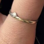Gold ring (women’s size), slightly twisted on one side with silver engraving.
