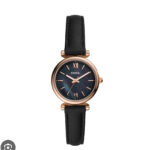 Fossil women watch with black straps and at the back DrPriya has been engraved