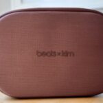 Brown beats studio pro case with headphone inside and 3 different types of chargers inside the case.