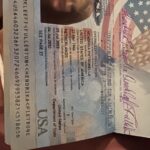 In leather brown passport folder with extra pics for another passport. In addition to leather carrier included Covid records and shot records
