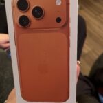 Orange iPhone 17 pro with orange case . Phone will display a phone number when found and a message saying phone is lost please call the number shown