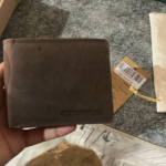 Brown colour having documents like aadhar card voter id DL, Pan card , canara bank atm on the name of Lokesh and a credit card of SBI on the name of Rajbir.