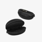 Black Oakley sport prescription sport glasses in a black zippered glasses case. Case would be closed with glasses inside. Attached photo is close representation.