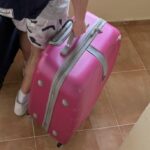 Pink standard size luggage. Around 45 pounds, hard plastic shell, Bright pink