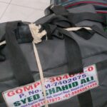 It was black big trolley bag, it had a printed name in front “Syed Shahid Ali” and passport no.”M-7402675″ also, there was a page in front with the same details.