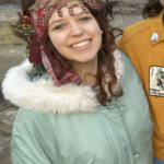 It is a blue/turquoise coat with a faux fur white trim on the hood. It has one chest pocket and two lower pockets. In the pockets contain my Amsterdam AHK school Id and a silver isamaya lipstick.