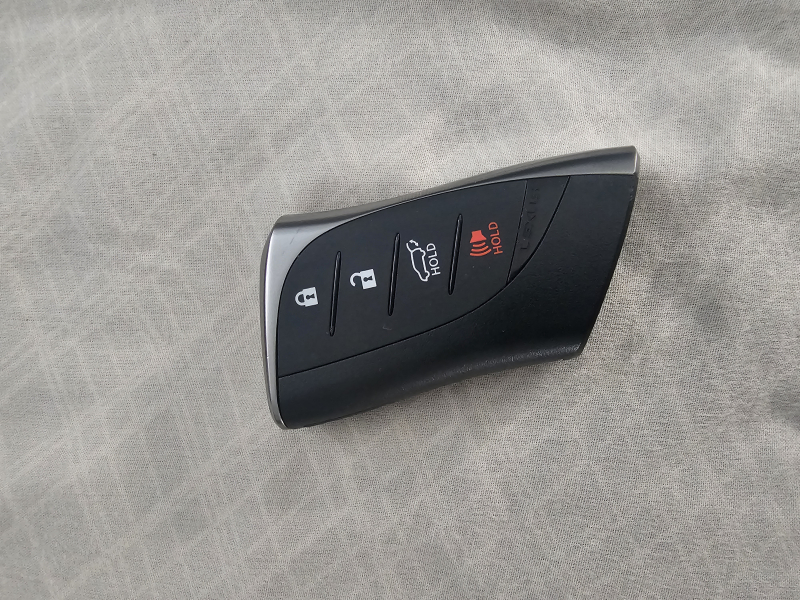 Its a black Lexus key fob on a key chain with a bunch of keys about 10 keys. I dont have a picture of the keys but Ive attached a picture of the Lexus spare key fob. |