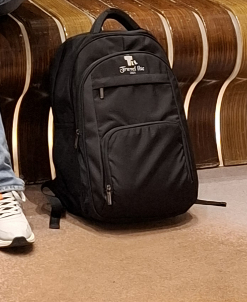 The bag is of black colour and branded with traveller.Inside the bag there is some new clothes, glasses and the citizenship Id card |