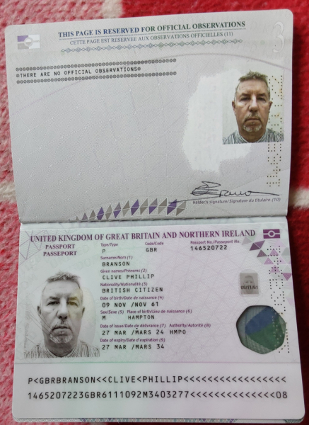 Additional Information: | Between passing border control and leaving the airport I went to the toilet next to baggage reclaim belts. Passport in the name of Clive Phillip Branson. |