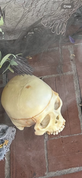 This is a plastic mold of a real skull with no lower jaw. It has a chip on the bottom bullae |